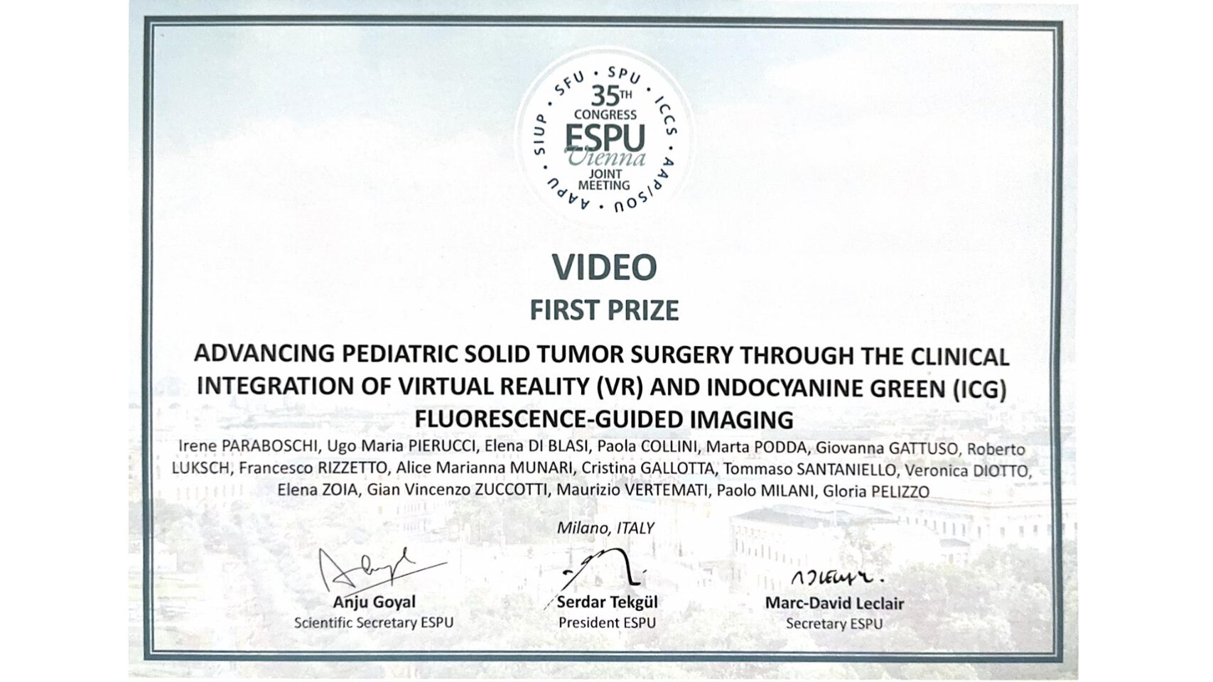 We are pleased to announce that at the 35th Congress of the European Society for Pediatric Urology, held in Vienna from September 3-6, 2025 (https://jointmeeting2025.espu.org), the collaboration between Printmed and the Pediatric Surgery Department of the Vittore Buzzi Children’s Hospital (directed by Professor Gloria Pelizzo) has led to new international recognition, with First Prize in the Video Abstract category for the paper entitled: